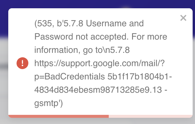Hinweis: Sollte bei der Authentifizierung der folgende Fehler auftreten, dann bitte einmal die Leerzeichen aus dem Passwort entfernen und es ohne Leerzeichen erneut probieren.