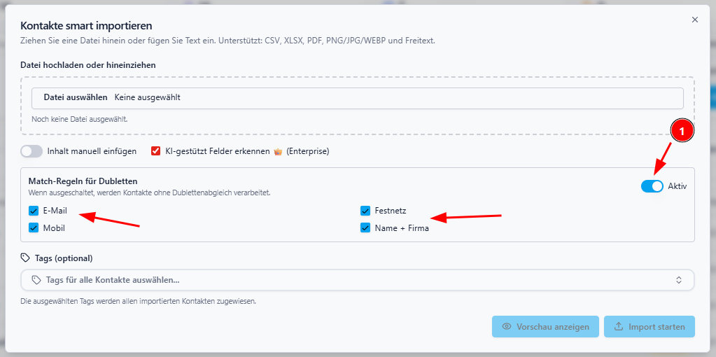 3) Kontakt-Import: Dublettenregeln gezielt steuern